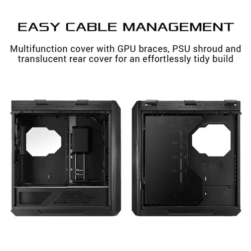 - Clean build made easy: A multi-function cover with graphics cardholders, a PSU shroud and a translucent rear cable cover offer effortless cable management