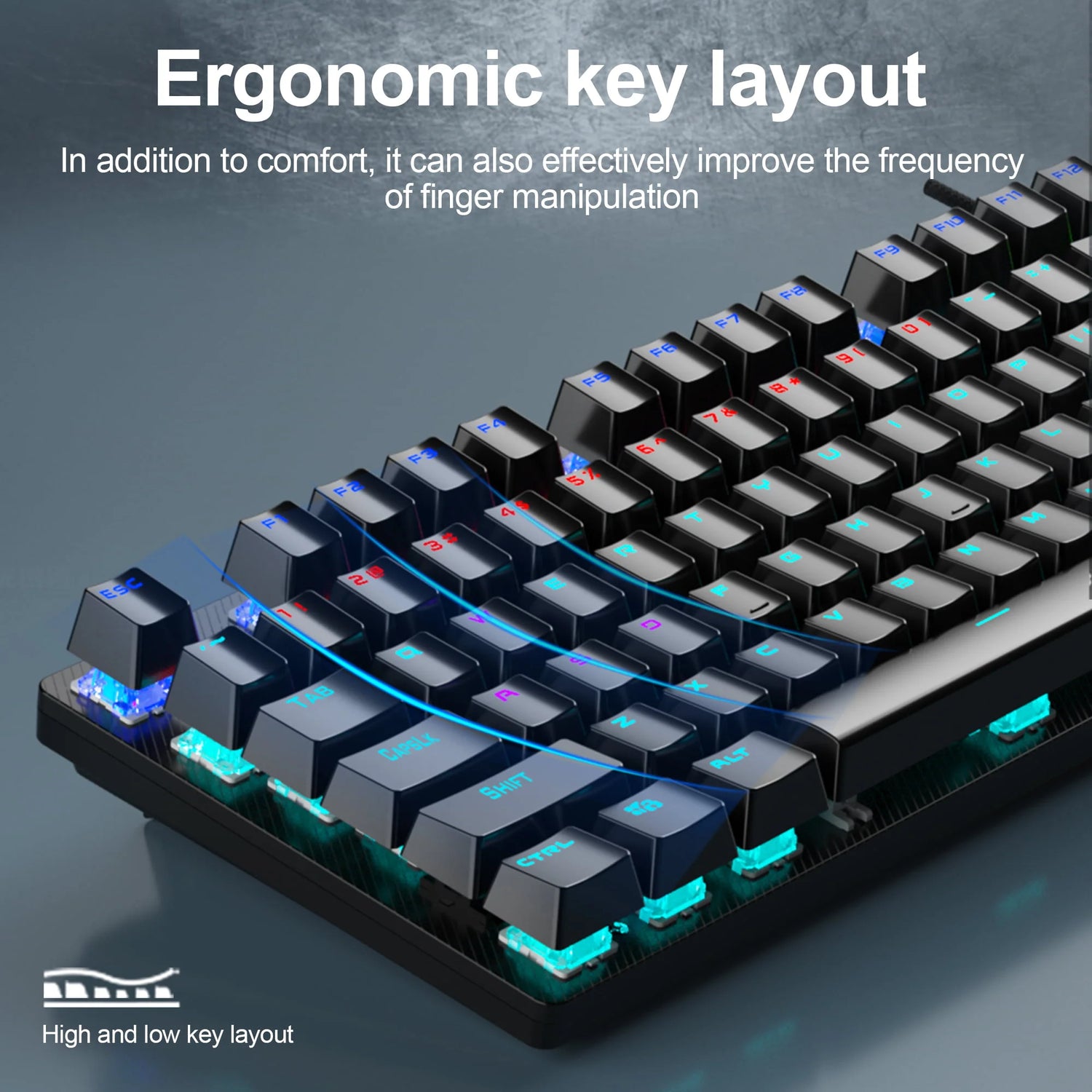 High-value and powerful faction, four colors are available (pink, blue, green, black) The keycap adopts two-color injection molding process, which is durable and not easy to fade. Multi-color optional Ultra-thin keyboard, sensitive keystrokes, trigger stroke 2.0MM Using mechanical axis switch design, 60 million keystrokes life, durable, excellent hand feeling Support Anti-Ghosting for 26 keys With intelligent sleep mode: the host enters the sleep or standby state, the backlight function is turned off, and the host resumes the previous mode after it is started. Keycap and gap backlight, uniform color, optional single color or mixed light The keyboard has a humanized design, and a series of commonly used shortcut function keys are added in conjunction with Fn.