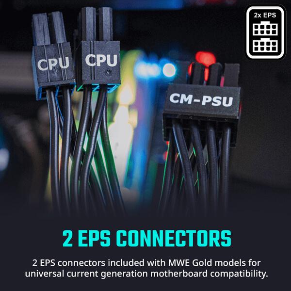 All MWE Gold - V2 models come standard with 2 EPS connectors in order to ensure universal compatibility with all current gen motherboards. Whether you get the minimum wattage level at 550W or the maximum at 850W, you never have to worry if you'll have enough connectors to use your ideal components