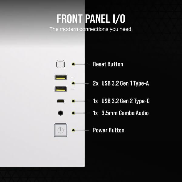 Case Front IO | (1x) USB 3.1 Type-C, (2x) USB 3.0, (1x) Audio in/out |