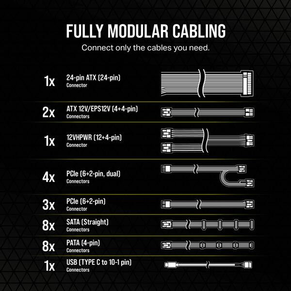 With three EPS12V connectors and fully modular cabling, HXi Series platinum power supplies have every connection needed to power today’s most demanding PC upgrades now and into the future, including the latest generation of power-hungry graphics cards and processors.