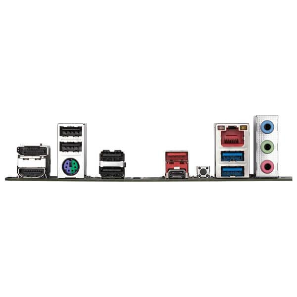 Back Panel Connectors | 1 x DisplayPort 1 x HDMI port 4 x USB 2.0/1.1 ports 1 x PS/2 keyboard/mouse port 1 x USB 3.2 Gen 2 Type-A port (red) 1 x USB Type-C® port, with USB 3.2 Gen 2 support 1 x Q-Flash Plus button 1 x RJ-45 port 2 x USB 3.2 Gen 1 ports 3 x audio jacks |