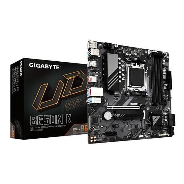 Gigabyte B650M K Motherboard supports AMD Ryzen 7000 Series Processors, 2*PCIe 4.0 x4 M.2 Connectors, 4*SMD DIMMs with AMD EXPO & Intel XMP Memory Module Support.